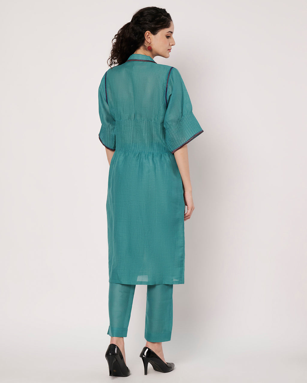 Teal Blossom Cotton Linen Embroidered Kurta Set
